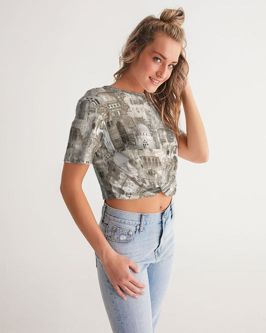 1,001 Minarets Women's All-Over Print Twist-Front Cropped Tee