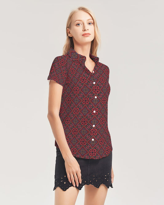 Palestinian @ Heart Women's All-Over Print Short Sleeve Button Up