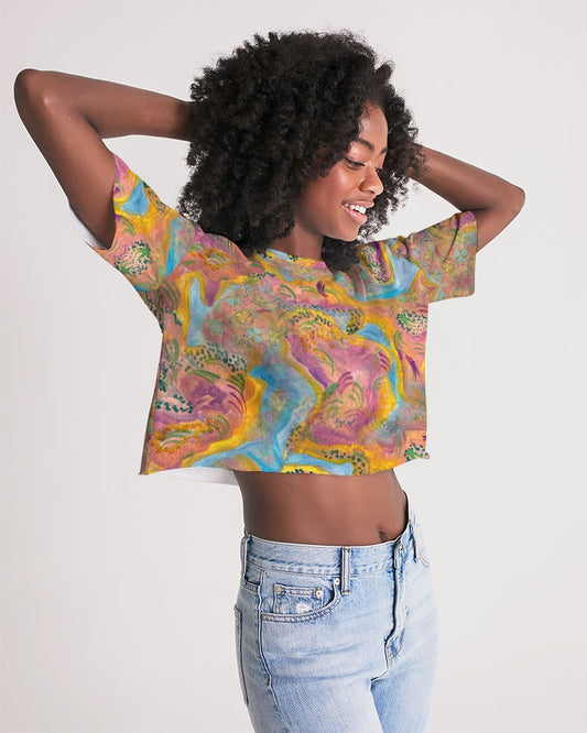 Around the world Women's All-Over Print Lounge Cropped Tee