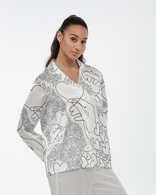 Imagine a World Filled with Love Women's Satin Long Sleeve Pajama Top