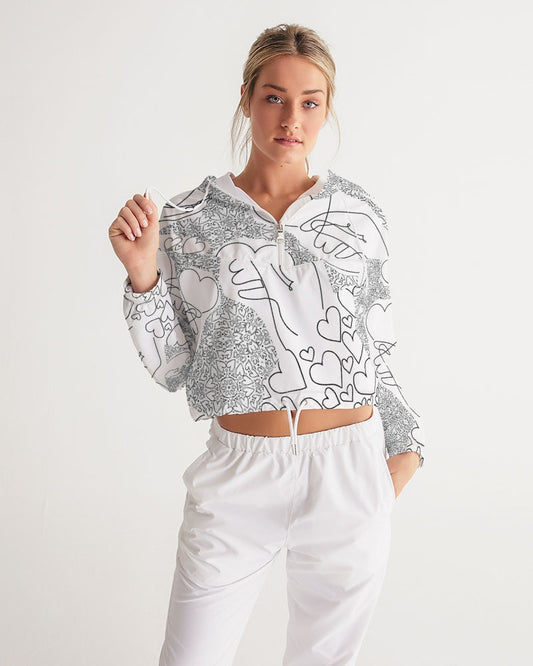 Imagine a World Filled with Love Women's All-Over Print Cropped Windbreaker