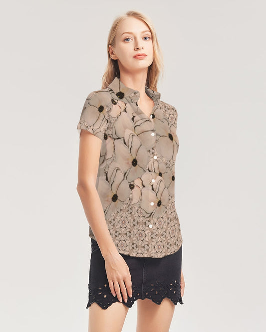 Blossoms Women's All-Over Print Short Sleeve Button Up