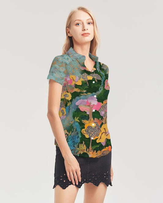 Joie de Vivre Women's All-Over Print Short Sleeve Button Up