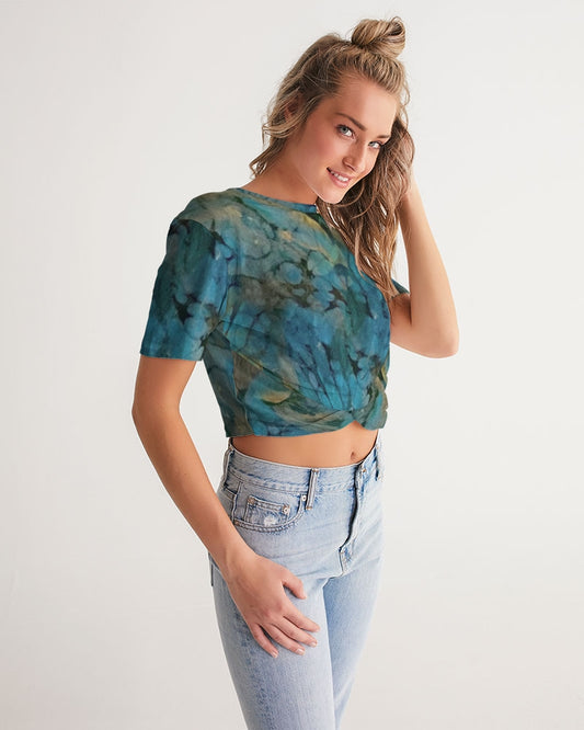 Joie de Vivre Women's All-Over Print Twist-Front Cropped Tee