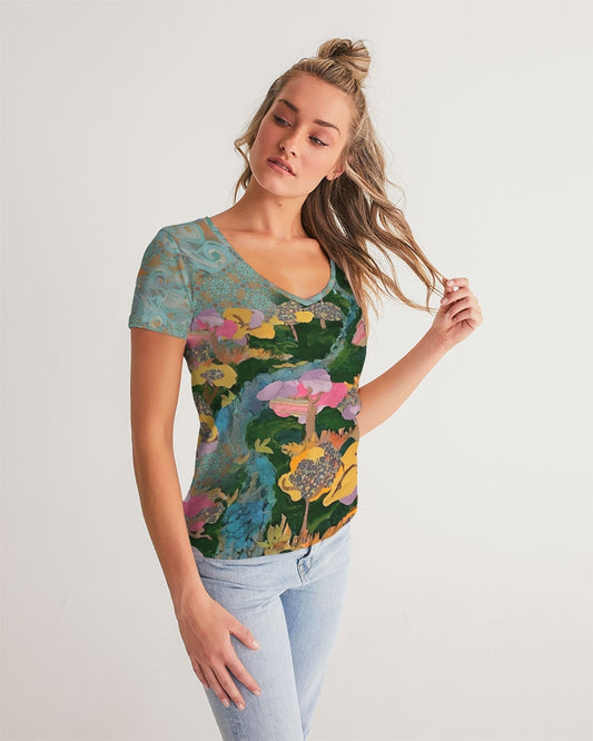 Joie de Vivre Women's All-Over Print V-Neck Tee