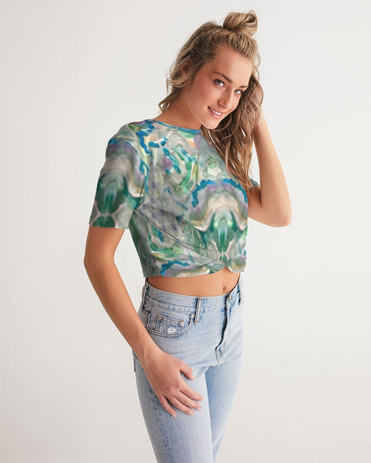 “Roots” Women's All-Over Print Twist-Front Cropped Tee