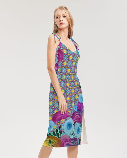 Watercolor Wonderland Women's Tie Strap Split Dress